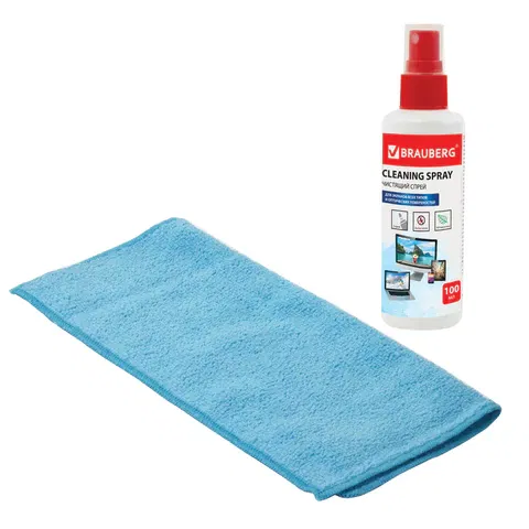 Чистящий набор BRAUBERG для ухода за экранами плазменных панелей, ЖК-мониторов, телевизоров и смартфонов легко удаляет пыль, отпечатки пальцев и другие загрязнения.