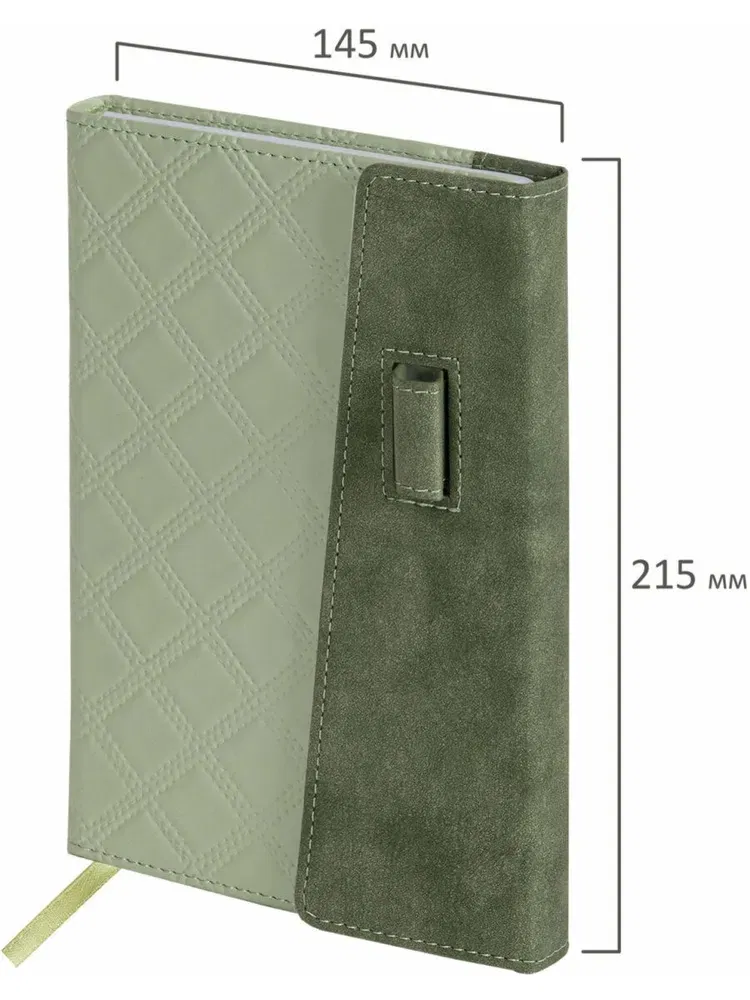 Ежедневник недатированный А5 145х215 мм, BRAUBERG "Stitch", под кожу, магнит, 160 л., оливковый, 116588 BRAUBERG Цена с НДС за 1 штуку