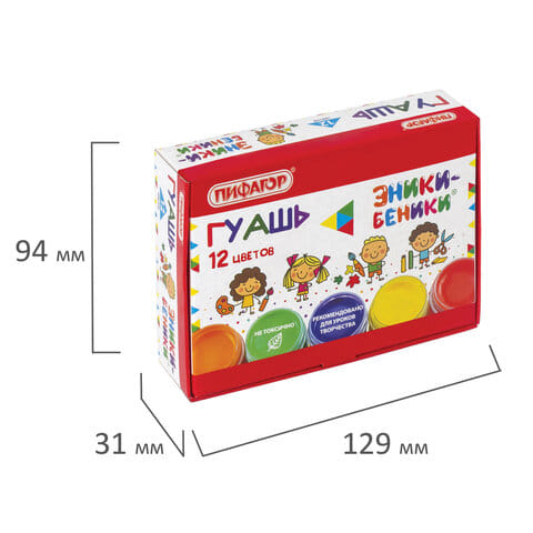 Гуашь ПИФАГОР отлично подойдет для школьников младших и средних классов, начинающих свой творческий путь на уроках рисования. Хорошо наносится на бумагу, картон, дерево, стекло, керамику.