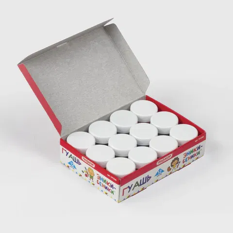 Краски полностью безопасны в использовании, не токсичны и не имеют резкого запаха. Гуашь обладает высокой светостойкостью и укрывистостью, легко размывается водой, хорошо наносится, без труда удаляется с рук и одежды. Краска находится в пластмассовой герметичной баночке, объем которой равен 10 мл. Общий объем – 120 мл. Ребенок сможет легко открыть баночки с винтовыми крышками без помощи взрослых.