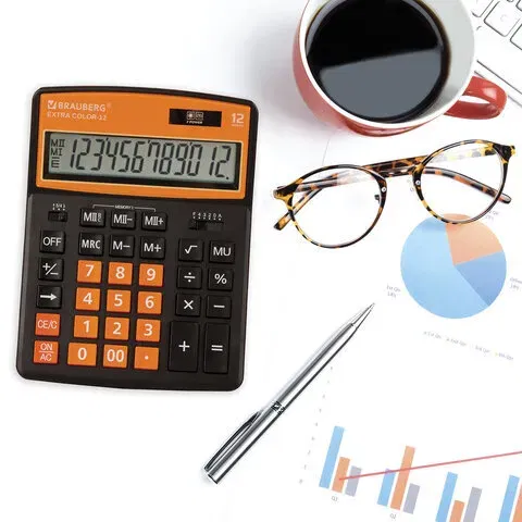 Настольный калькулятор BRAUBERG EXTRA COLOR-12-BKRG. Большой дисплей с увеличенным углом обзора, устойчивый корпус и клавиатура с цветной дифференциацией для эффективной работы с максимальным комфортом.