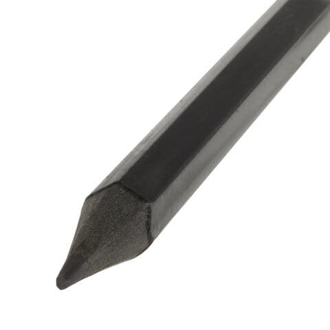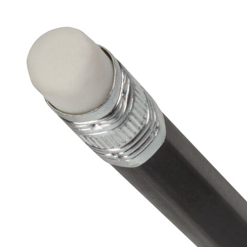 Изготовлен из пластика, оснащен ластиком. Имеет шестигранное сечение. Карандаш длиной 185 мм легко точится и не крошится. Выполнен в черном цвете. Поставляется заточенным.