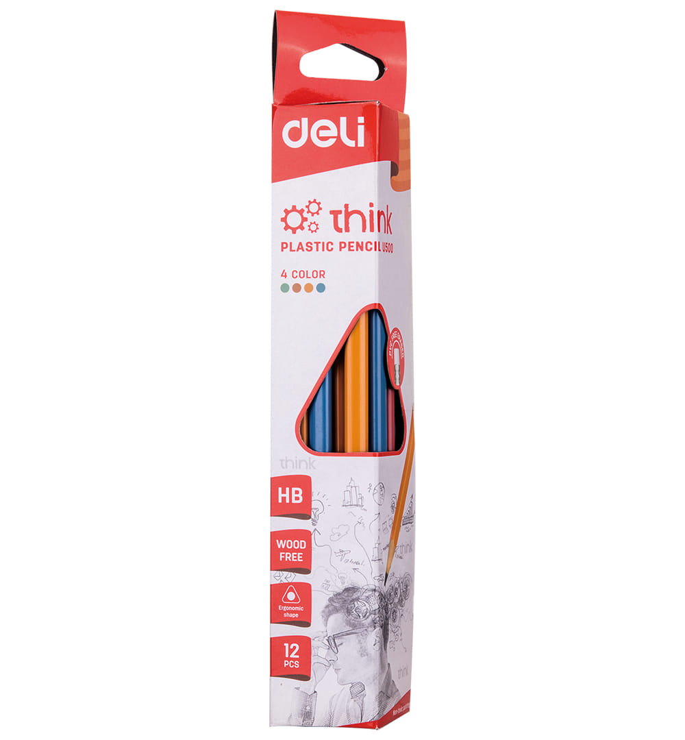 Карандаш простой чернографитный НВ пластик Think с ластиком DELI, арт.U500, РФ DELI Цена с НДС