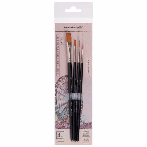 Художественные профессиональные синтетические кисти BRAUBERG ART "CLASSIC" № 1, 3, 4, 10 предназначены для работы с акварелью, масляными красками и другими материалами для живописи.