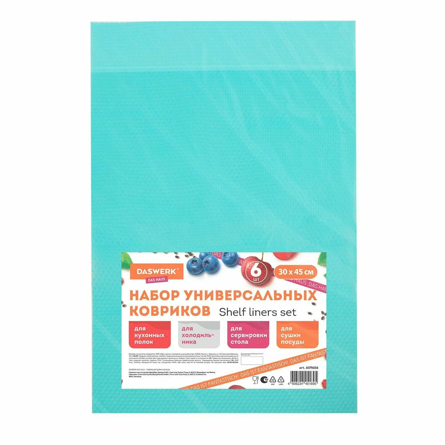 Коврики универсальные 6 шт., 30х45 см, для холодильника, полок, сервировки, салатовый, DASWERK, 609605 Цена с НДС за 1 упаковку