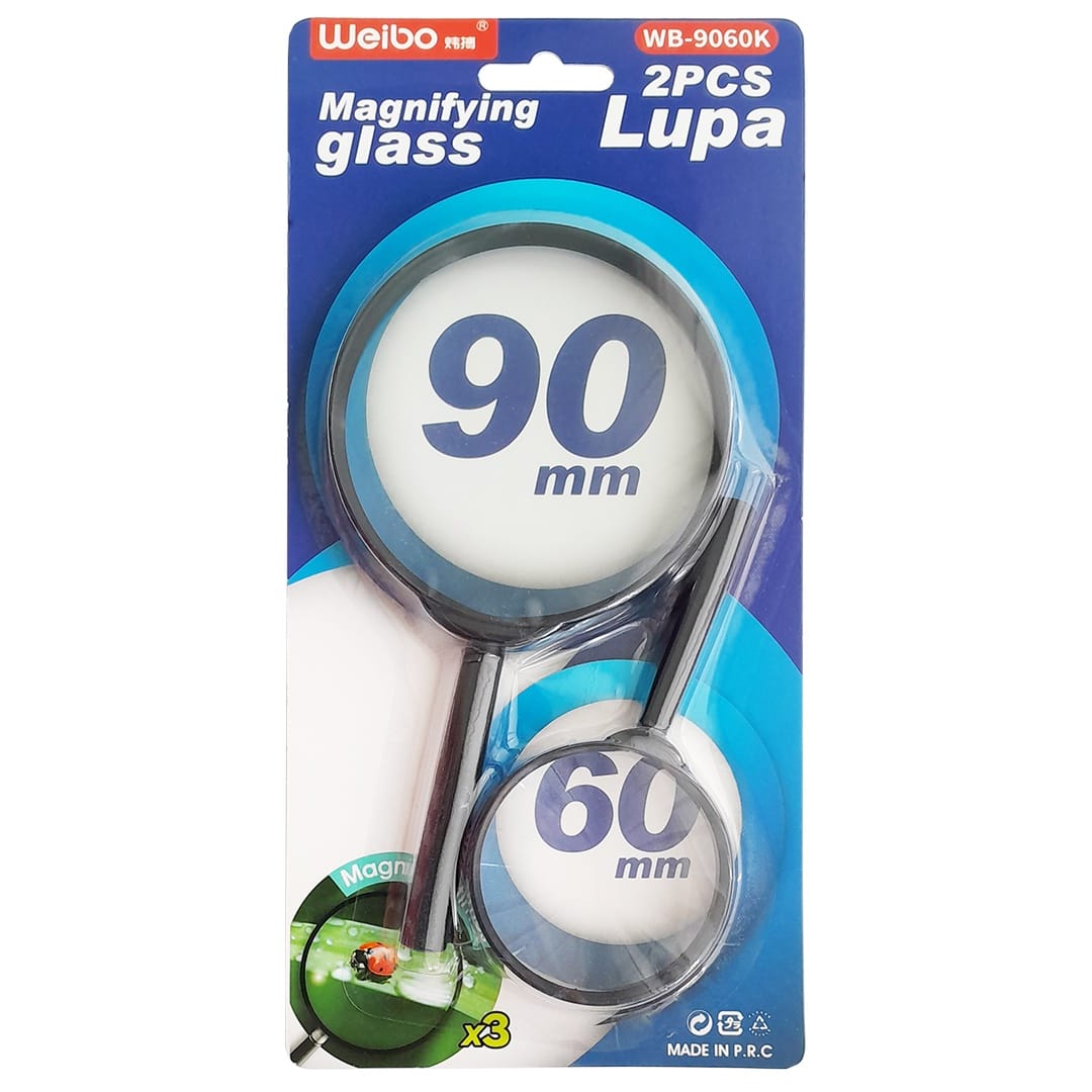 Набор канцелярских луп Weibo с диаметром линзы 60 мм и 90 мм, и увеличением 3х (8 диоптрий).
