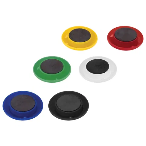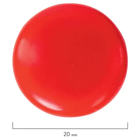 Диаметр магнита составляет 20 мм. 6 штук в комплекте. Надежно удерживаются на любой железной или стальной поверхности. Магниты круглой формы выполнены из пластика цветов ассорти. Поставляются в удобной блистерной упаковке с европодвесом.