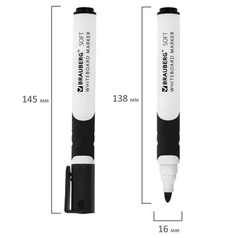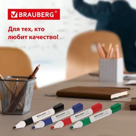 Высококачественный набор маркеров BRAUBERG "SOFT" для белой доски. Предназначен для письма на досках с магнитно-маркерной поверхностью.