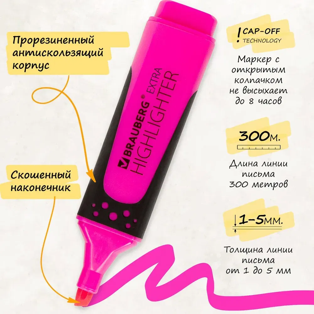 Текстовыделители BRAUBERG "EXTRA" предназначены для выделения текста на бумаге любого типа.