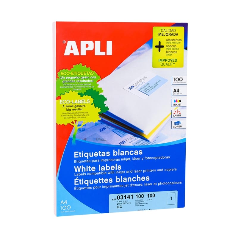 Белые самоклеящиеся этикетки Apli предназначены для струйных и лазерных принтеров, а также копировальных аппаратов. Удобны в применении, долговечны и надежны.