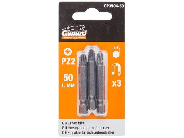 Насадка крестообразная PZ2 50мм 3шт GEPARD (бита Pozidrive позидрив сталь S2 магнитная) Цена с НДС