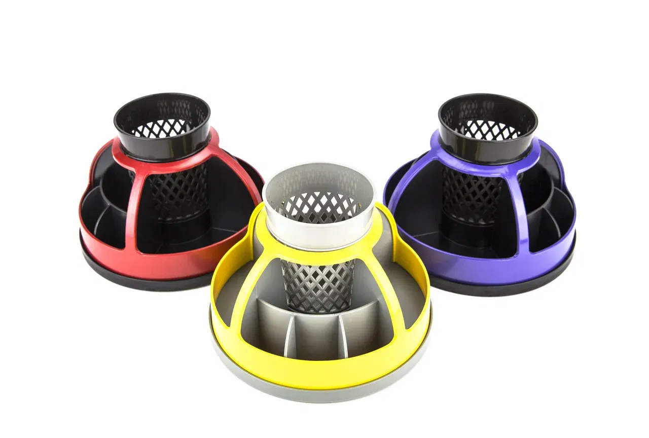 Органайзер для канцелярских принадлежностей "Карусель" - 9 отделений для канцелярских принадлежностей и блока бумаги. Компактный и эргономичный. Выполнен из перерабатываемого высококачественного пластика двух цветов. Вращается на 360°.