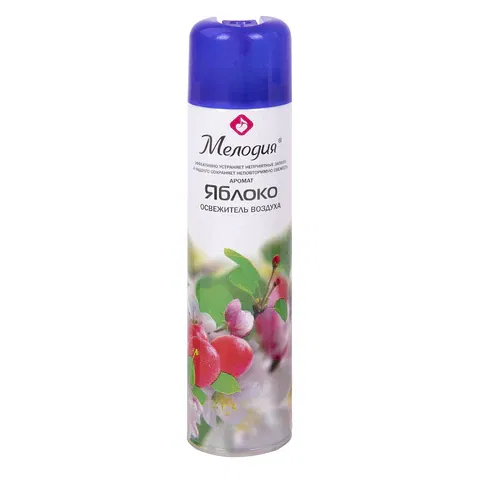 Освежитель воздуха МЕЛОДИЯ "Яблоко" быстро и эффективно устраняет неприятные запахи и освежает воздух в жилых и бытовых помещениях. Имеет приятный стойкий аромат, который надолго наполнит помещение свежестью.