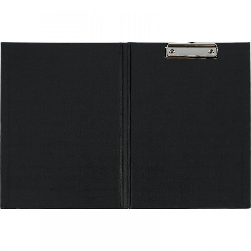 Папка-планшет формата А4 с крышкой и верхней створкой изготовлена из плотного картона, сверху покрыта ПВХ чёрного цвета. Позволяет комфортно работать с документами на весу. Металлический прижим надежно удерживает листы и файлы. Вместимость до 100 листов.