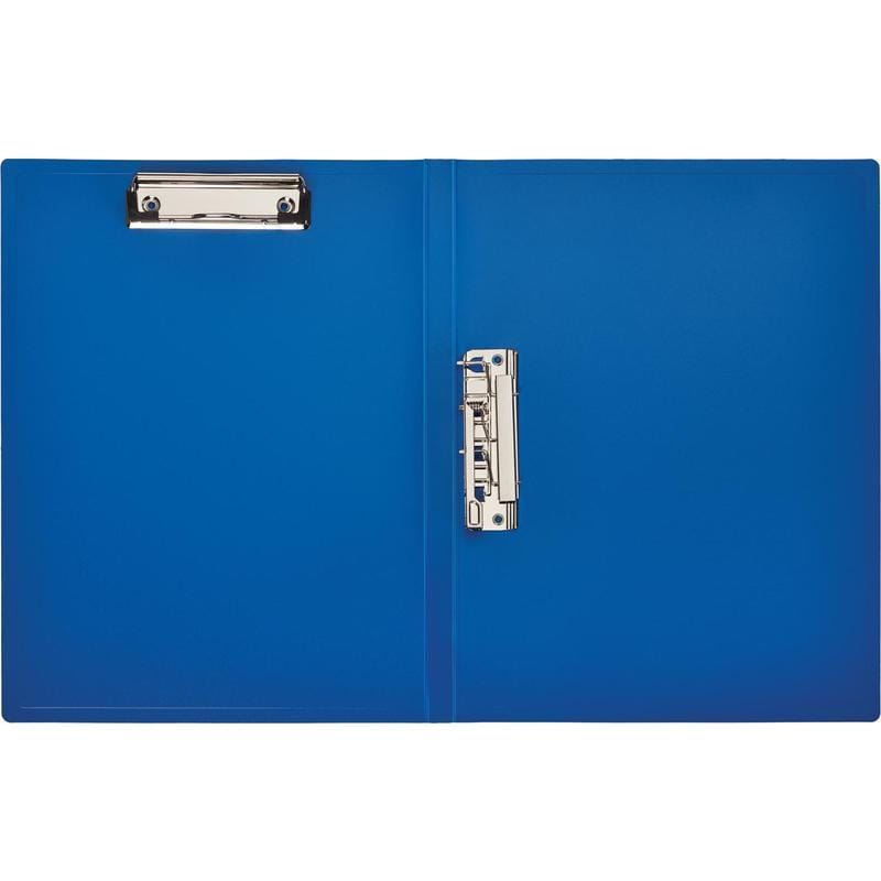 Папка с зажимом, 15 мм С ДВУМЯ ЗАЖИМАМИ пластик, СИНЯЯ, РФ