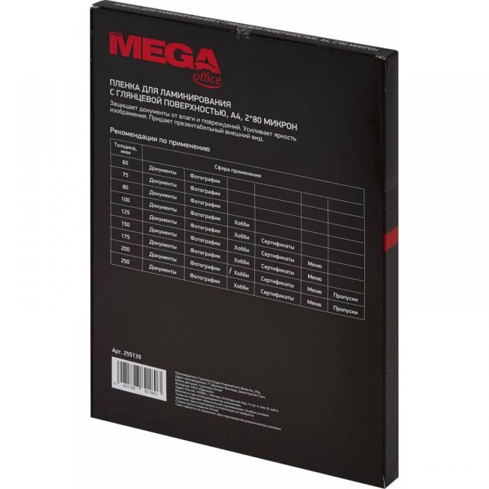 Пленка для ламинирования Promega office предназначена для защиты документов от механических повреждений и влаги, продлевают срок службы документов и придают им наиболее презентабельный вид. Все заготовки для ламинирования имеют прозрачность 99% и обладают антибликовыми свойствами.