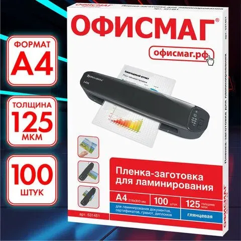 Пленка для ламинирования ОФИСМАГ придает документу стильный внешний вид, защищает от потертостей и других механических воздействий.