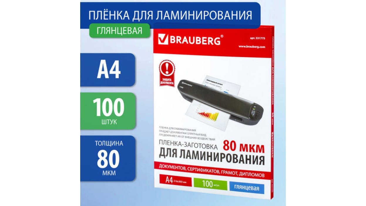 Пленка для ламинирования BRAUBERG надежно защитит документы от влаги, пыли, воздействия УФ-лучей и других внешних факторов.