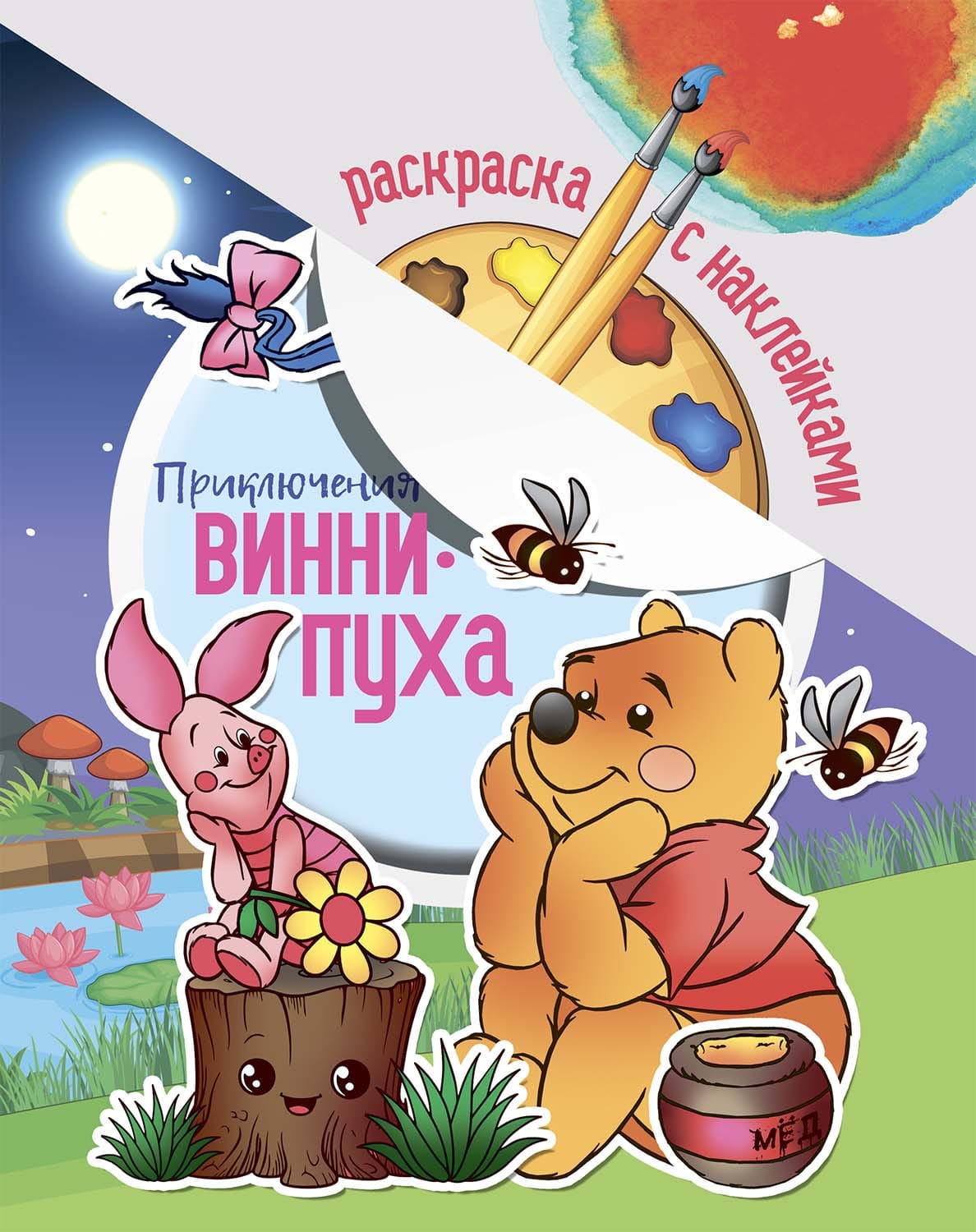 Раскраска с наклейками. А4. Приключения Винни-Пуха