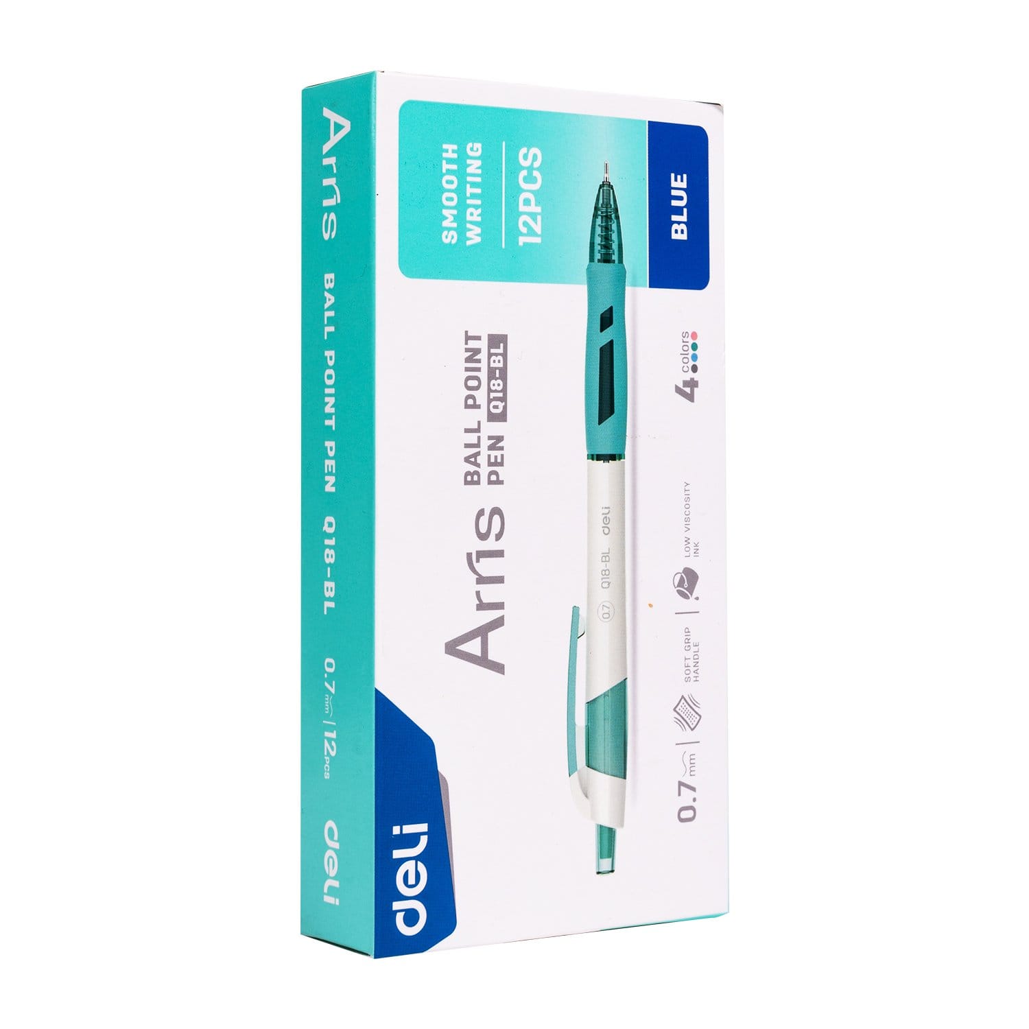 Ручка шариковая Deli Arris ассорти автоматическая, 0.7 мм, резиновая манжета, синие чернила, в упаковке 12 шт.