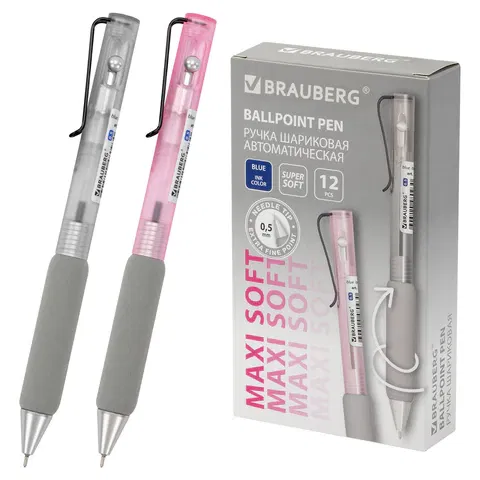 Шариковая автоматическая ручка с ультрамягким грипом BRAUBERG " MAXI SOFT" – ручка, с которой получаются идеальные записи! Современный дизайн и высокое качество.