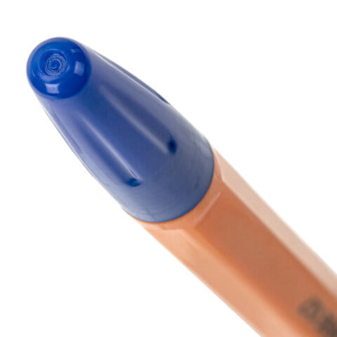 Ручка имеет оранжевый шестигранный корпус с удобной профилированной грип-зоной из резины и детали в цвет чернил. Вентилируемый колпачок.