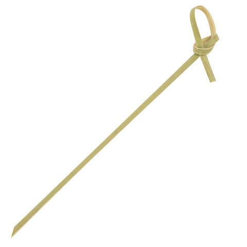 Шпажки-пики изготовлены из бамбука. Безопасны при использовании, так как не выделяют вредных веществ и не меняют вкус продуктов. Изделия представляют собой шпажки, концы которых загнуты в форме узелка.