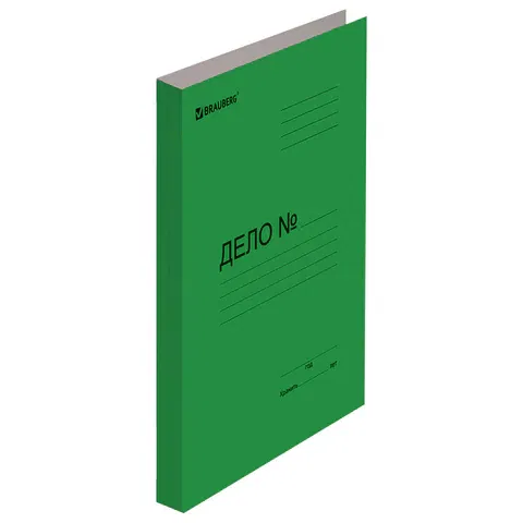 Подходит для документов формата А4 и меньше. Изготовлен из зеленого мелованного картона плотностью 360 г/м2. Оснащен металлическим механизмом сшивания. Вмещает до 200 листов стандартной плотности. Имеет надпись "Дело №" на обложке. Поставляется в гофрокоробе.