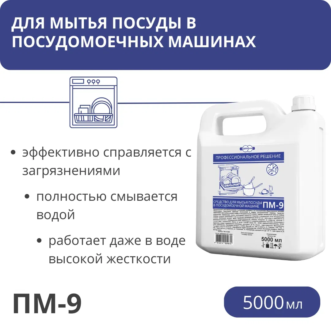 Жидкое щелочное средство высокой концентрации ПМ9 для посудомоечных машин. Подходит для использования в воде высокой жесткости. Совместимо с любыми дозирующими устройствами. Подходит для мытья посуды из нержавеющей стали, стекла, фарфора, фаянса, керамики, пластика.
