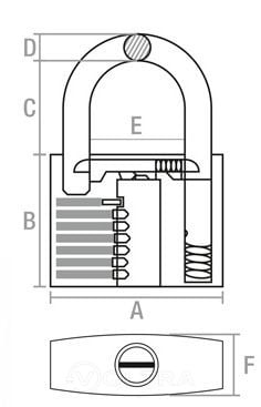 Габариты мм: A 55, B 43, C 36, D 9,5 E25,2 F42